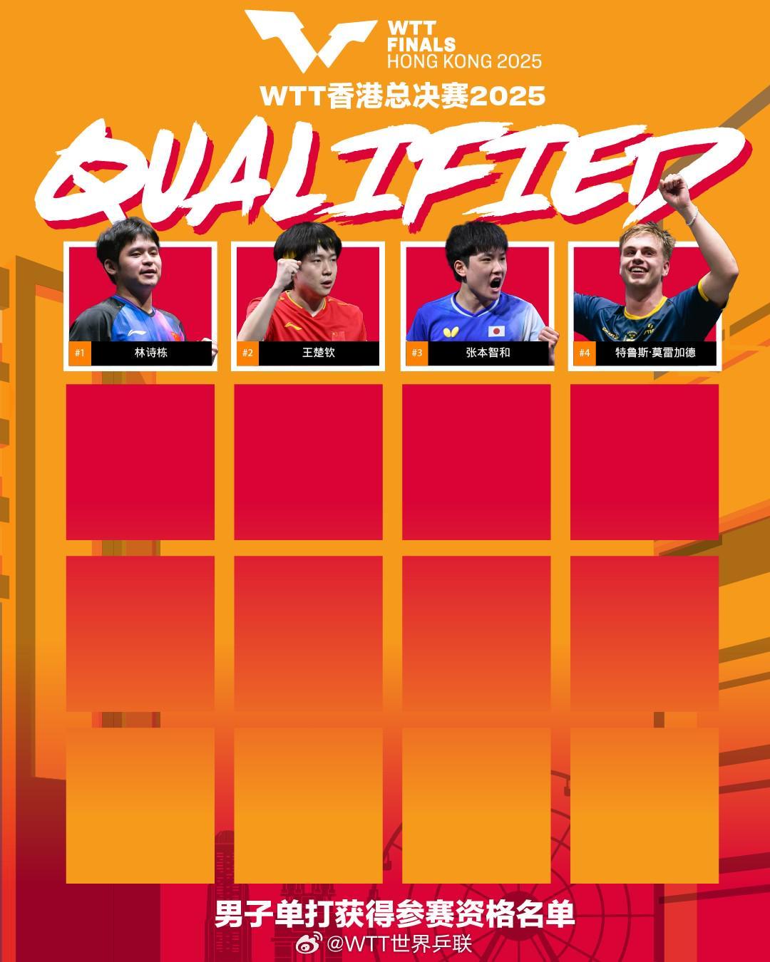 男单:林诗栋、王楚钦、张本智和、莫雷加德