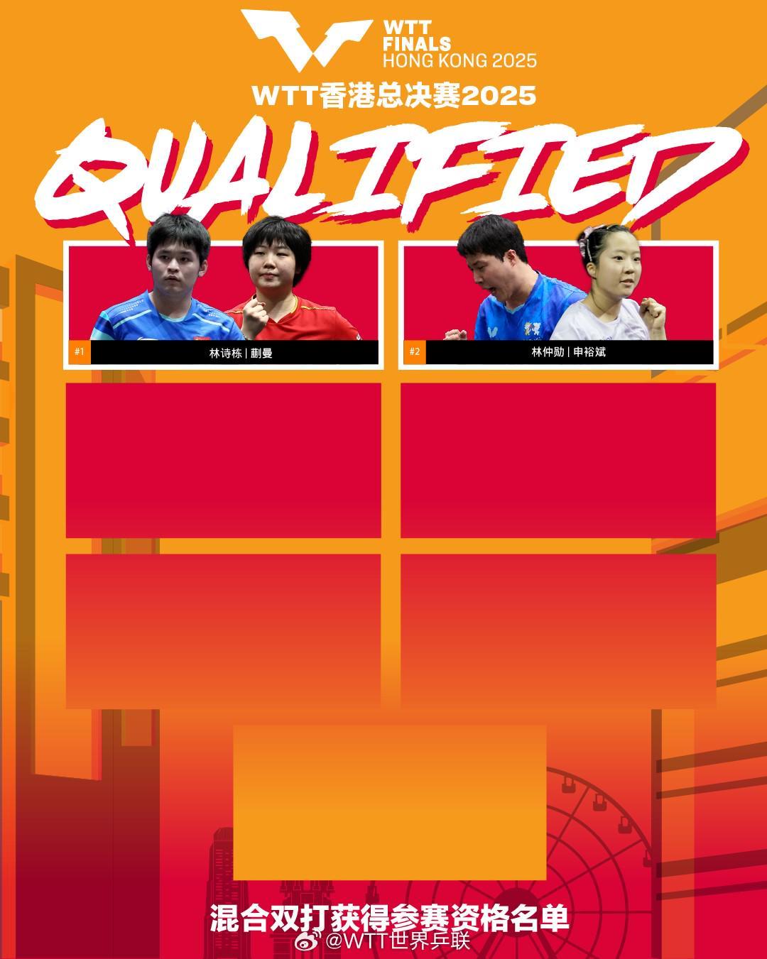北京时间8月26日,WTT官方公布2025年香港总决赛首批入围名单,孙颖莎、王楚钦领衔国乒多人入选。